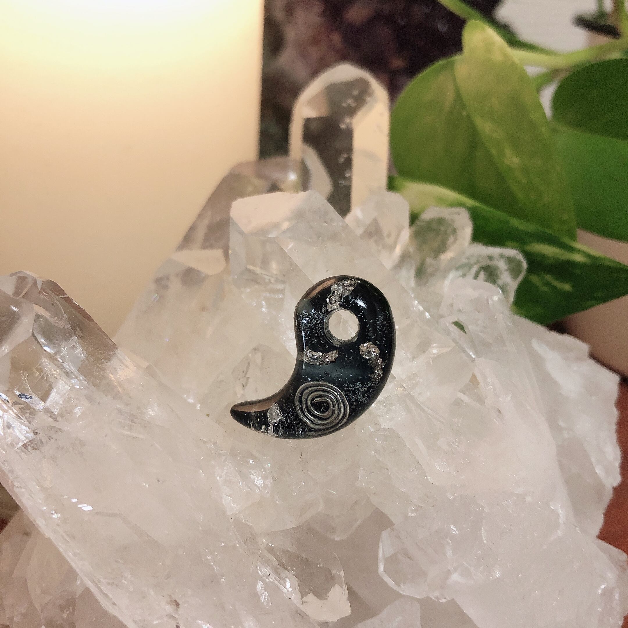 ブラックに近いネイビーの勾玉オルゴナイト。